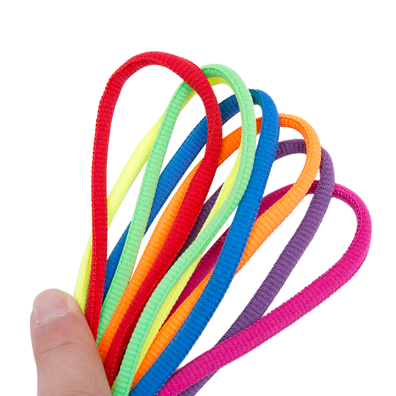Os cadarços ovais são um cruzamento inteligente entre cadarços planos e redondos, combinando o melhor dos dois mundos. Eles geralmente estão disponíveis em dois tamanhos padrão, 6mm e 9mm, oferecendo aos usuários muitas opções e vêm em uma variedade de cores de estoque para atender às suas necessidades pessoais. Amplamente conhecido como cadarços esportivos, eles são perfeitos para tênis, botas de caminhada e outros tipos de calçados ativos por causa de seu desempenho. Eles são cuidadosamente projetados para suportar os rigores de exercícios e aventuras ao ar livre. Eles geralmente são feitos de materiais de nylon ou poliéster duráveis e elásticos para garantir um ajuste confortável, resistir efetivamente ao desgaste e se encaixar perfeitamente no seu estilo de vida ativo.